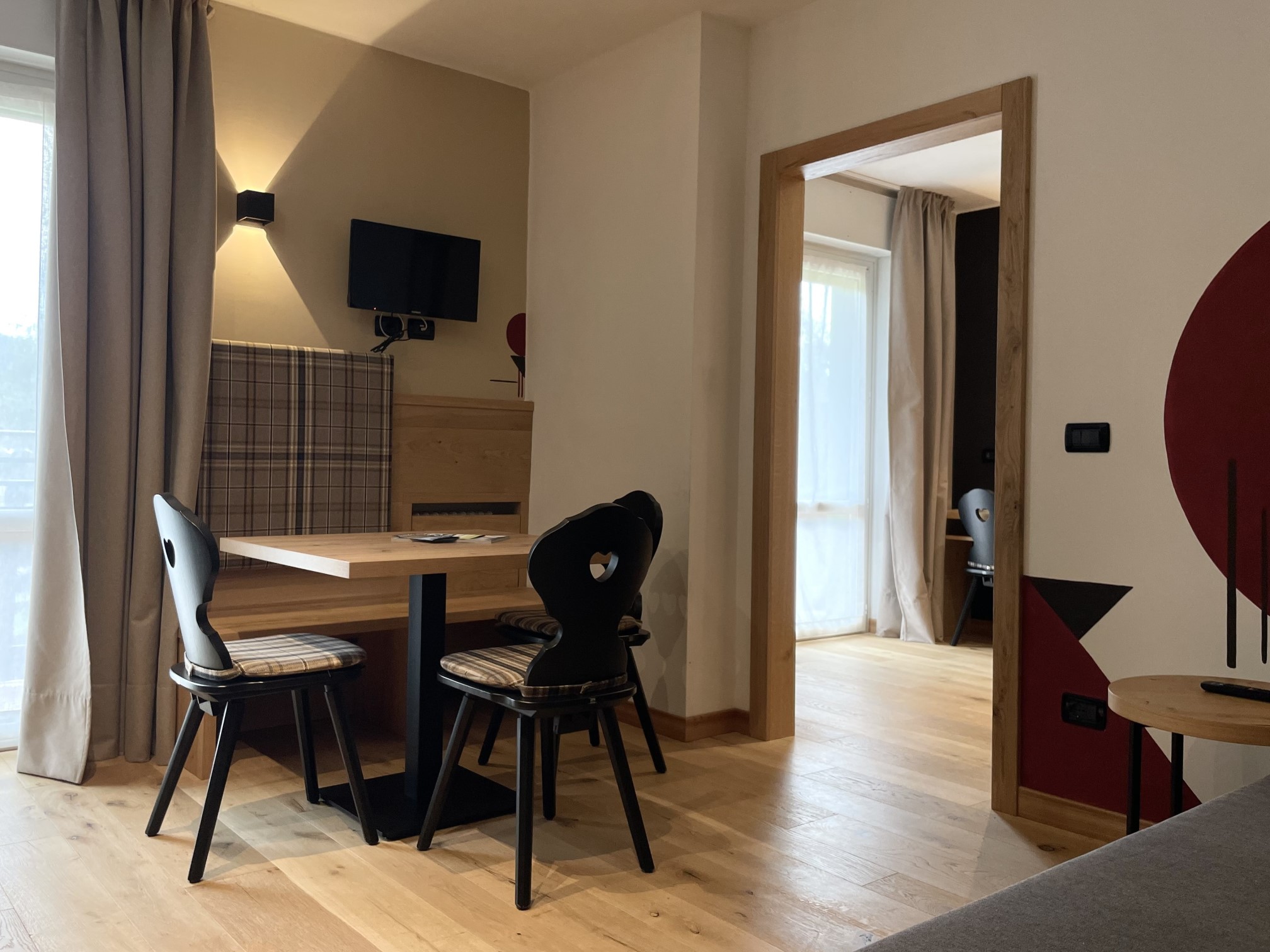 The themes of the suites are, Avio, Golf, Art and Ski. They differ in the colors of the fabrics and walls and the paintings present in each room made by Gloria. In some suites you can also find objects and images that recall the chosen theme.