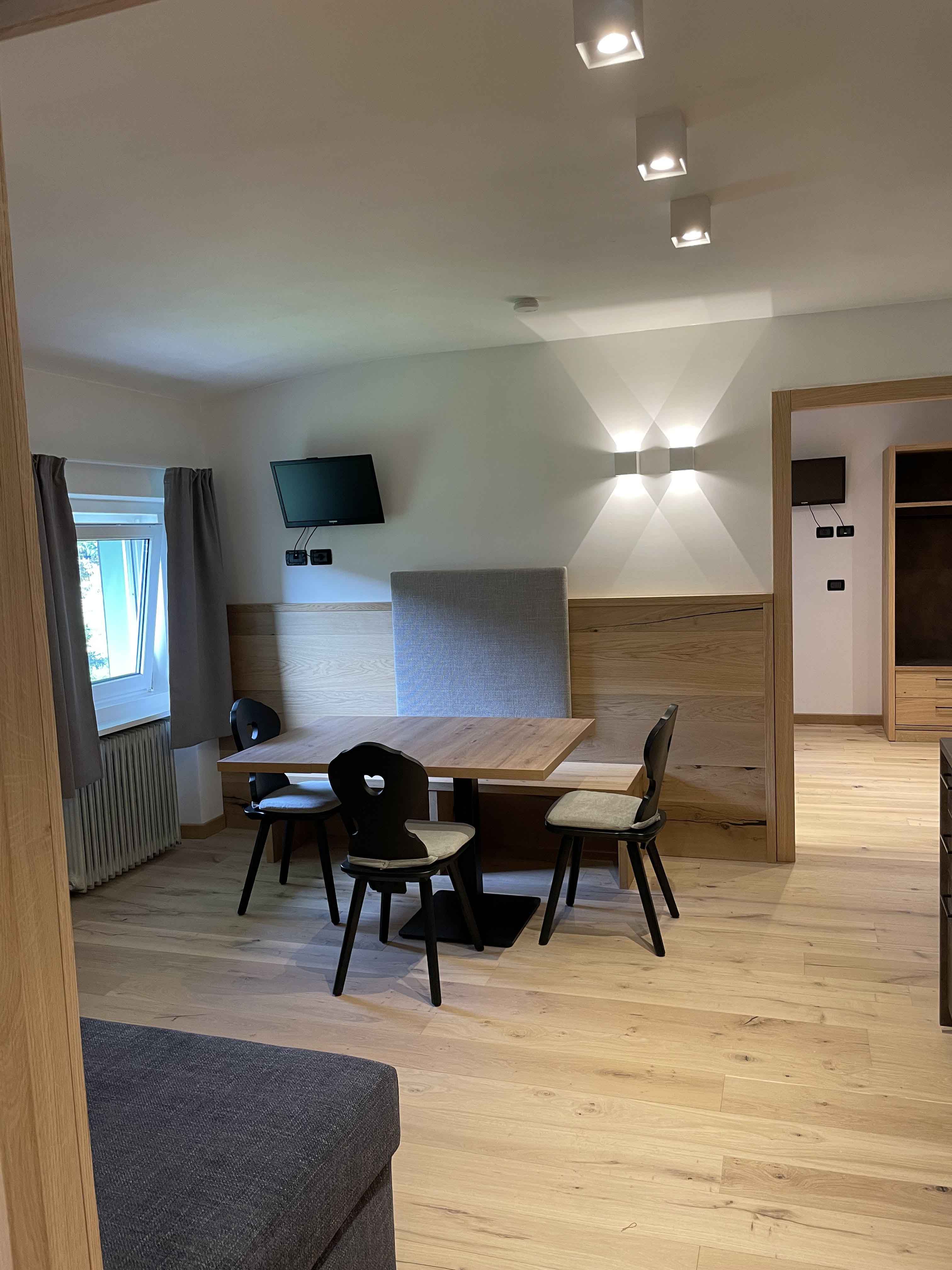In case specifically, our 68 square meter family suites are perfect. Entrance with atrium, a large living room with sofa, table with bench and chairs, two large bedrooms both with sliding doors and their own en suite bathroom.